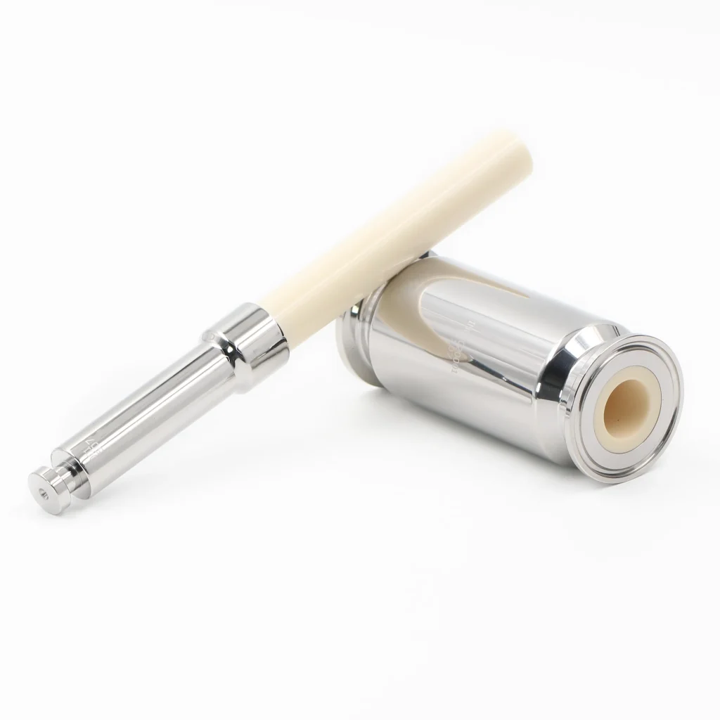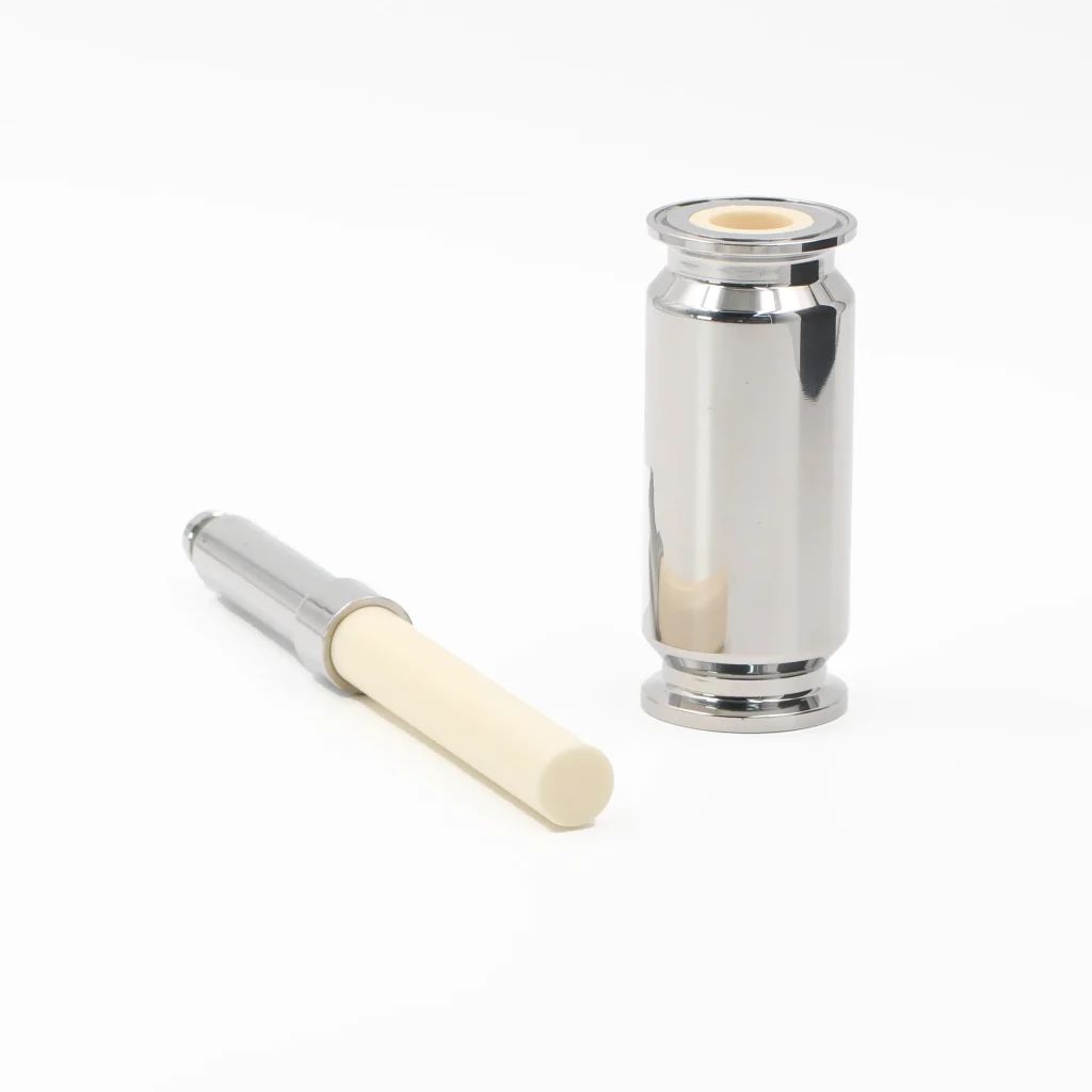 The Ceramic Plunger Metering Pump Assembly is a precision fluid dosing component designed for high-accuracy liquid metering and filling systems. It features a high-purity alumina ceramic plunger combined with a precision-machined 316 stainless steel pump barrel, enabling stable and repeatable volumetric dispensing through reciprocating plunger motion.