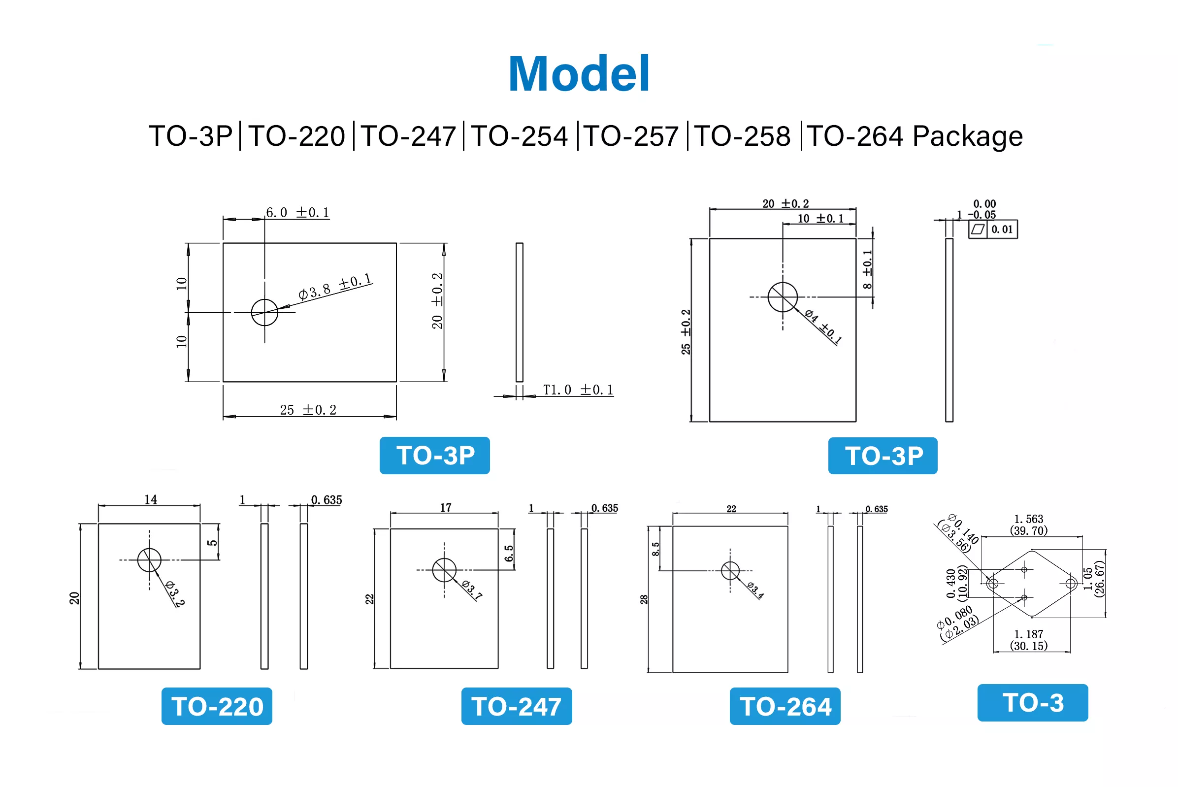 For Package Type: TO-3P / TO-220 / TO-247 / TO-264 / TO-3/TO-254/TO-257/TO-258, With Hole or Without Hole.